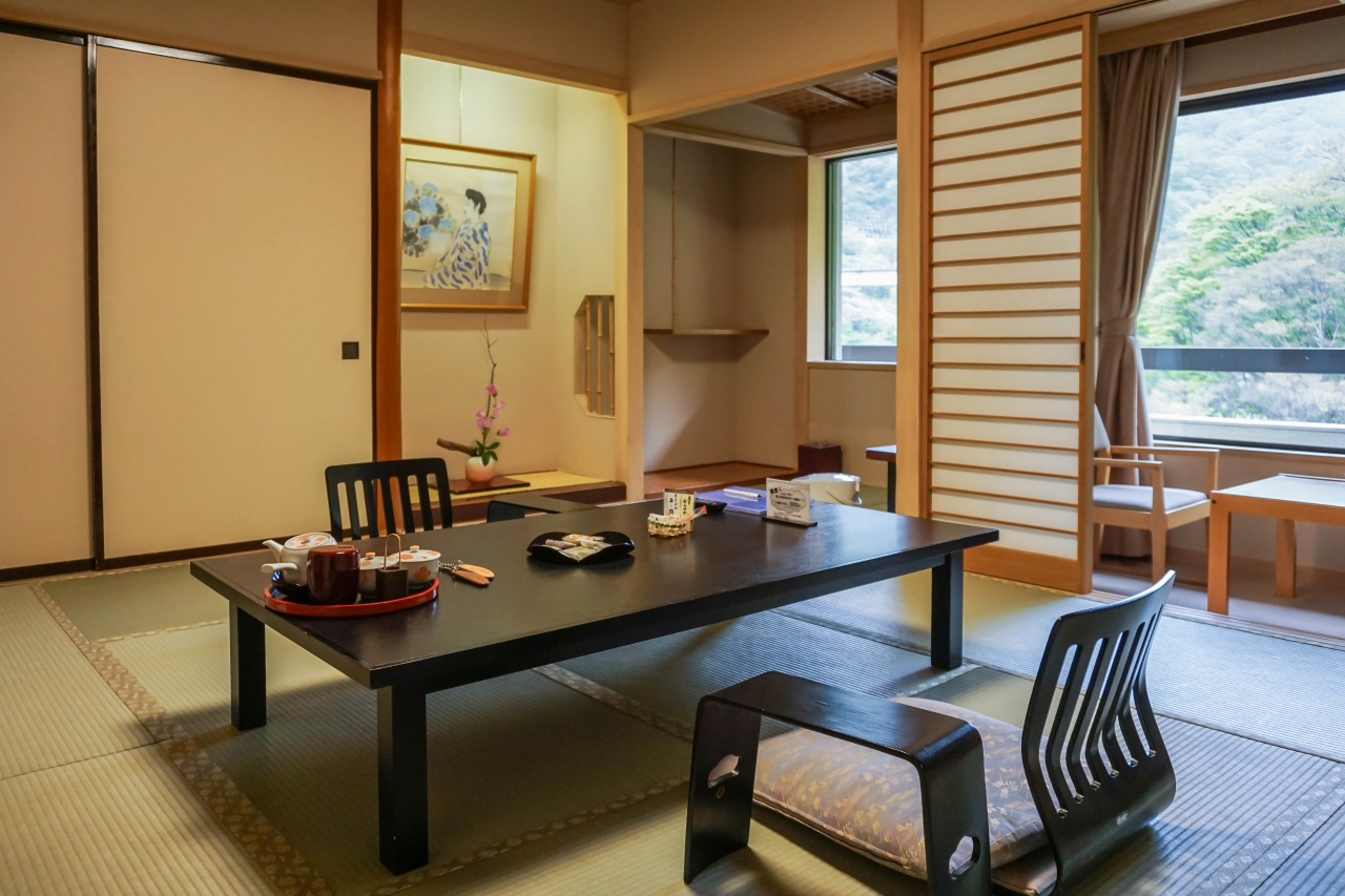 スタンダードな和室。リニューアルしているとのことで内装はきれいで清潔です。浴衣はサイズ違いを2種類用意あり。また、鍵も2つ用意いただけます。