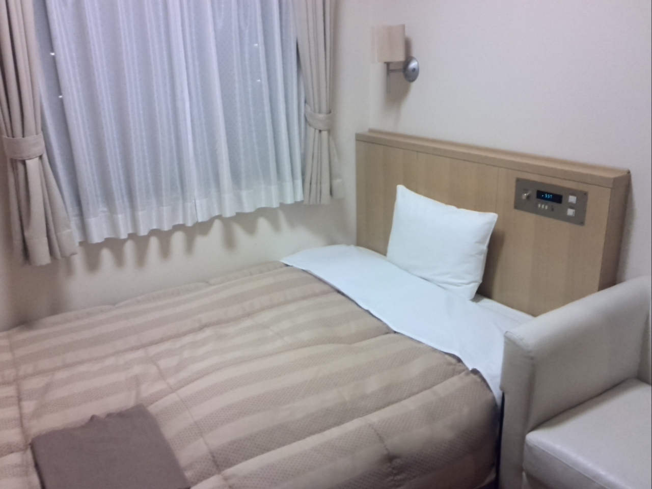 部屋はベットが幅を利かせてて正直狭かったです。寝るだけなのでよかったですけど、もうちょっと何とかならないのかなぁと思いました。