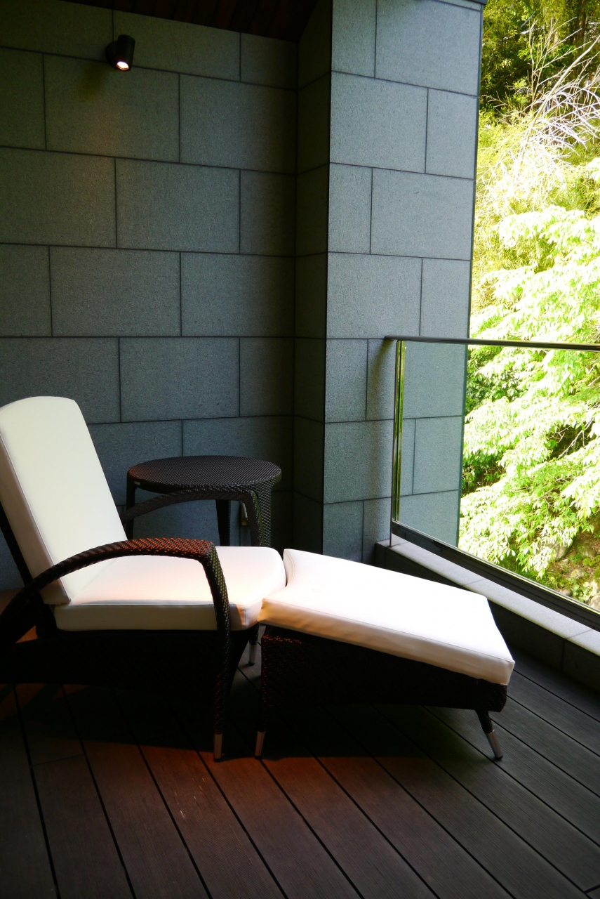 メゾネットタイプの離れに宿泊。ゴールデンウイーク中の滞在でしたがお食事会場以外では宿泊者と遭遇することもほとんどなく静かに過ごせました。お天気に恵まれましたが、離れなので雨が降っていると大浴場や食事に出るときはちょっと大変かも。でもお部屋にお風呂もついているのでとにかくゆったり過ごしたい方にはお勧めです。ちなみに宿の近辺に買出しができるようなお店はありませんでした。(敷地内にカフェはありますが)
