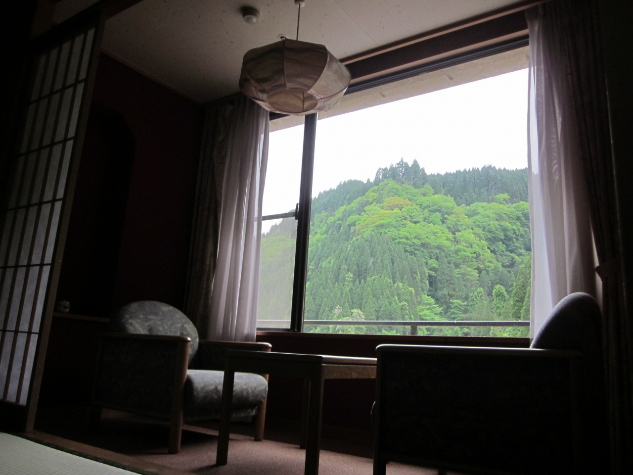 15時過ぎにチェックインして案内された部屋は最上階の渓流側の部屋?、和室12.5畳の広くて落ち着いた良い部屋で、館内の説明を受けながらお茶を入れて頂き、誠に丁寧なるおもてなしに関心を致しました(本来はこう有るべきなんですがね?…)。