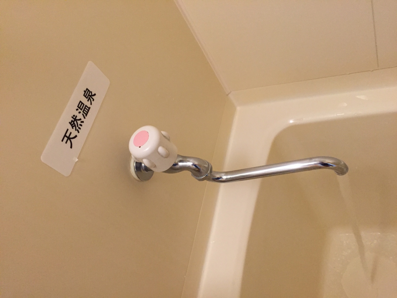 通常の蛇口以外に温泉専用の蛇口があり、ユニットバスに温泉を溜めて浸かれます。