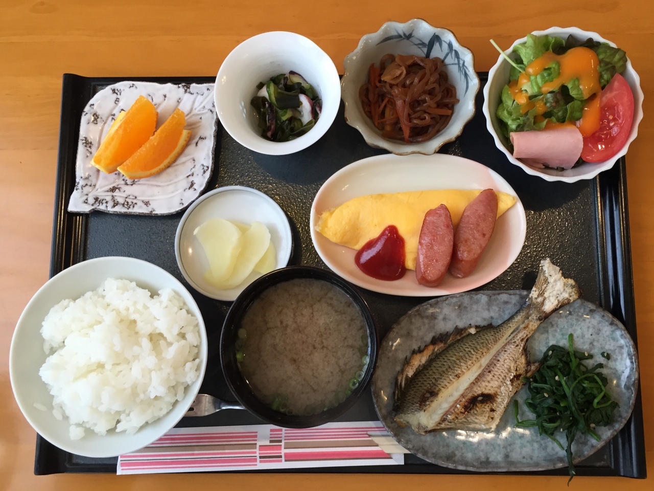 朝食は1階の食堂で、バイキングではなく、よくある旅館の朝食のような定食です。