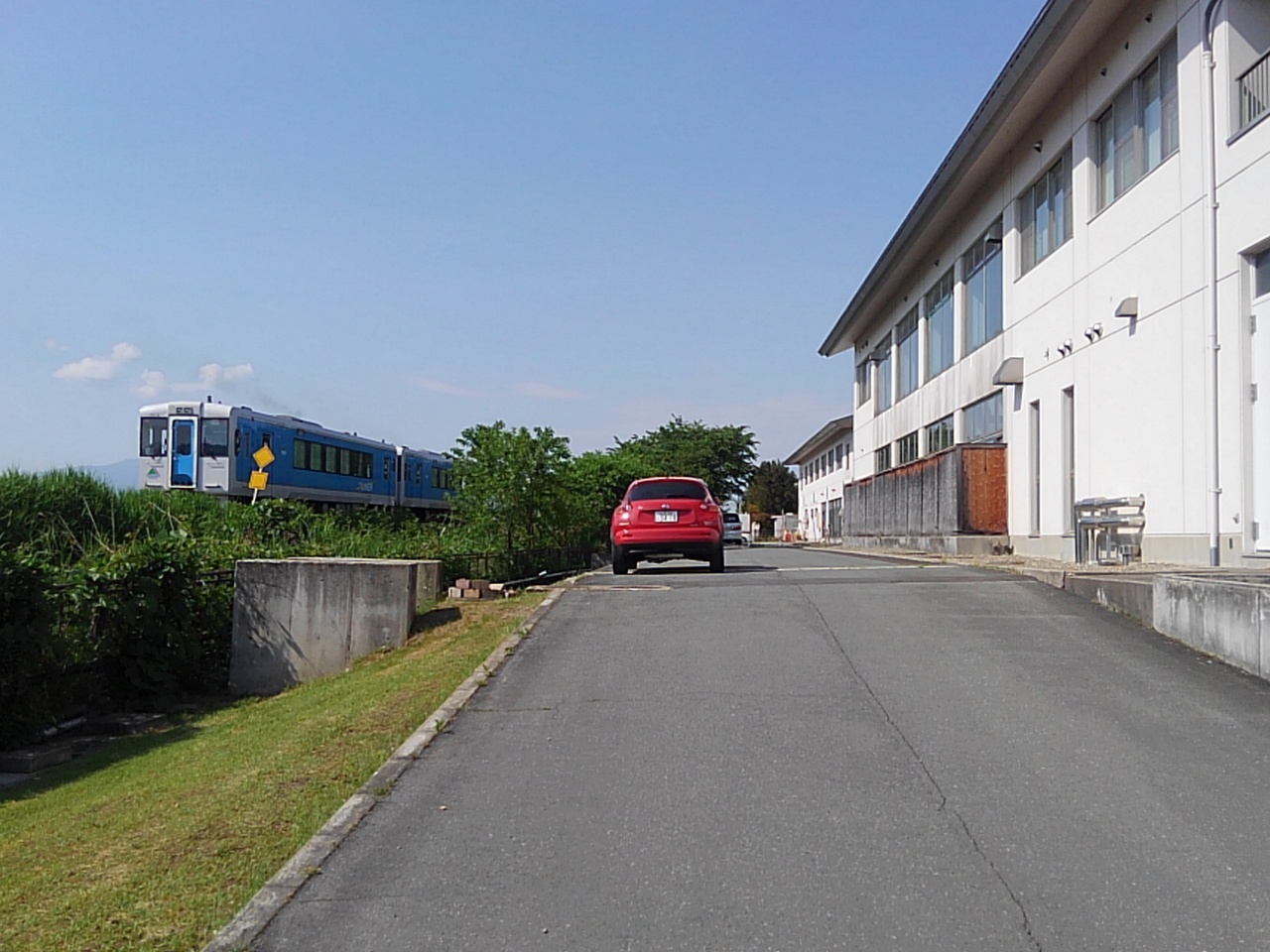 濁り湯が人気の「ひまわり温泉」。日帰り入浴や宴会では何度も利用していましたが、先日初めて泊まって見て、宿泊棟のすぐ裏をJR左沢線の気動車が通ることに気付きました。