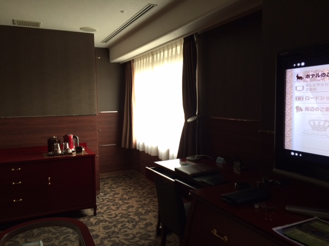 いくつかスィートのお部屋はあるようですが、私の宿泊したお部屋は、えんじ色を基調とした家具にベーシックで落ち着いた壁紙でした。