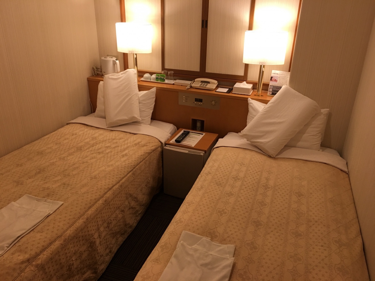 小さ~なコンパクトツインはシャワーと寝るだけのもので、特に不便もありません。