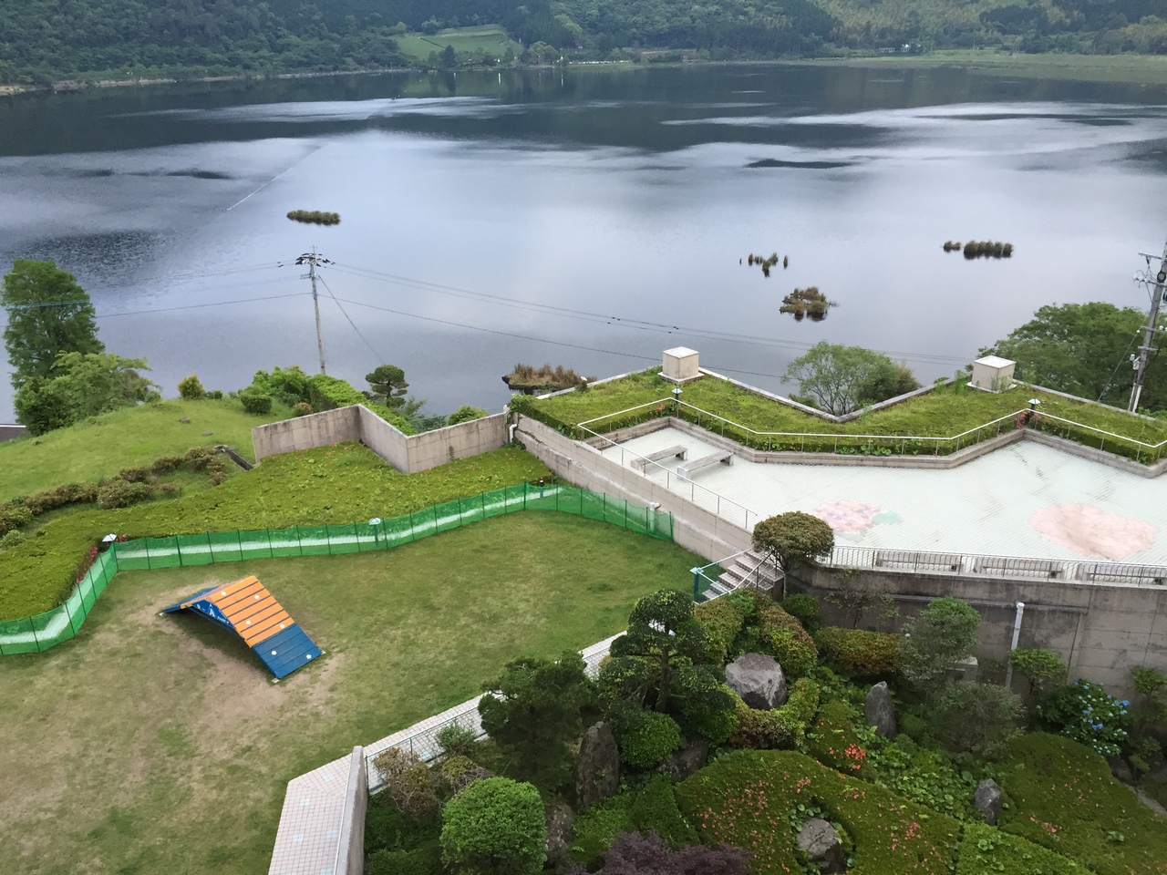 藺牟田池(いむたいけ)のほとりにあるペットと泊まれるホテルです。