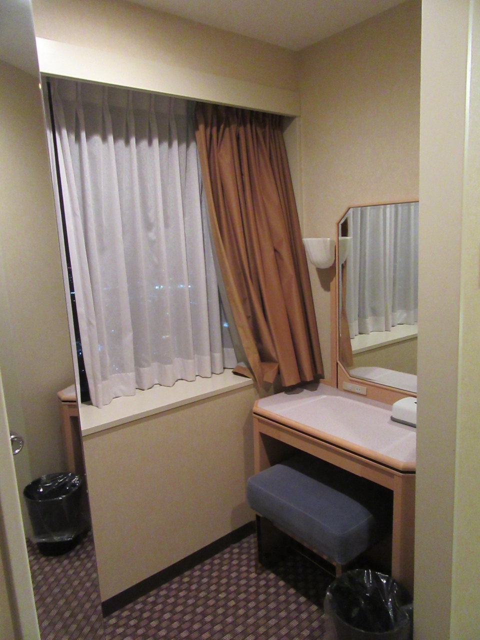 部屋は広く、3人位で泊まっても充分だと思います。入口を入ってすぐ左側にはドレッサーコーナーもありました。