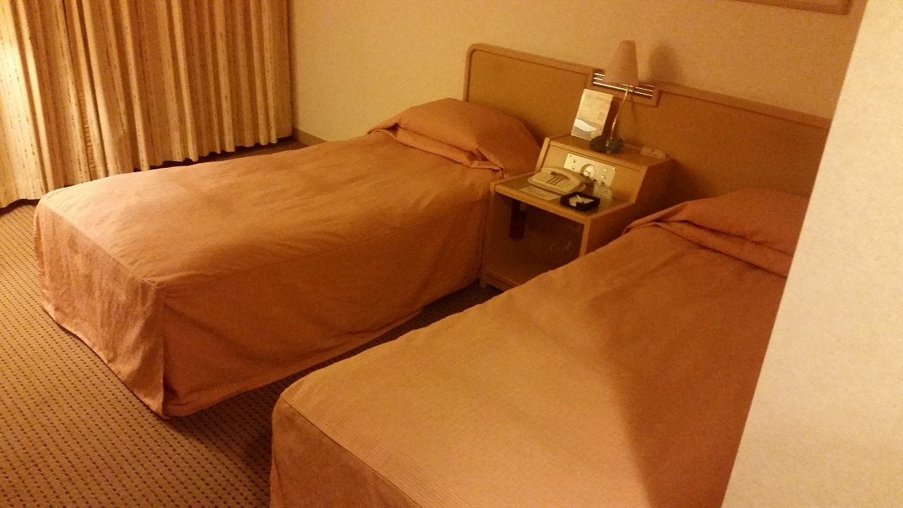 素泊まり4000円と言うプランを見つけて予約しました。当日、部屋に入って見るとナント、ツインルームが用意されていて嬉しかったです。当然部屋は、広くてひとりでは勿体ない感じのする部屋でした。フロント担当者は、ハキハキとしていて好感が持てる対応でした。
