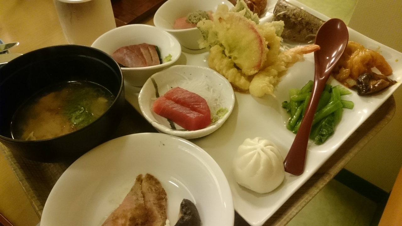 夕食はビュッフェ方式でした。少し混んでおり、入店に10分ほど待ちましたが、種類が豊富で美味しかったです。
