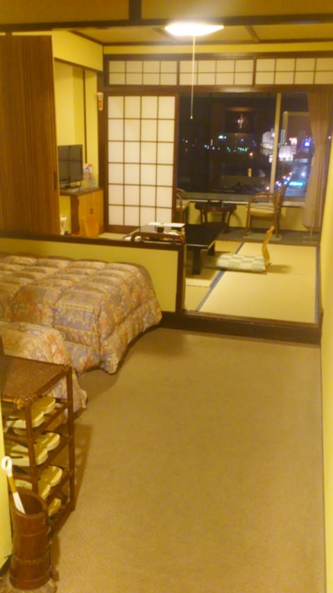 別府温泉が団体旅行で超大繁盛のときはこのホテルも賑わっていたんだろうな、と若干の寂しさを感じるが、おかげでビジネス客に門戸を開き安値で泊まれるのはとてもうれしい。部屋が和洋室(ツインベッドと和室)だったのにはビックリした。これを一人で止まるなんてなんと贅沢。温泉大浴場ももちろん素晴らしいです。