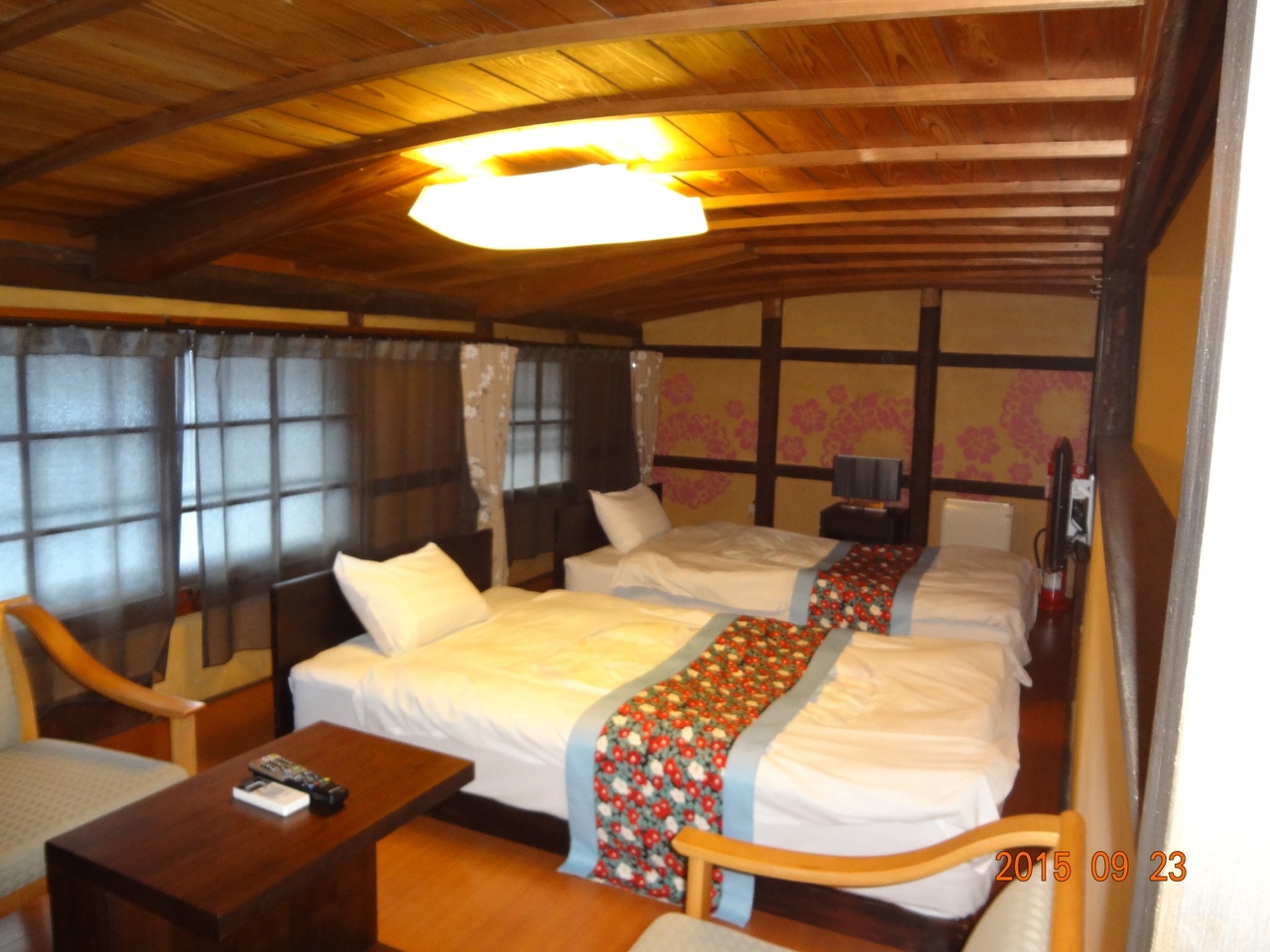 夕食は但馬牛づくしを頂きました。女性には丁度よかったみたいですが、もう少しあってもよかったかなと思いました。食べ終えて「天」に戻りひと休みしてお風呂へ。残念ながら温泉ではない普通のお風呂です。朝も普通の和食でした。