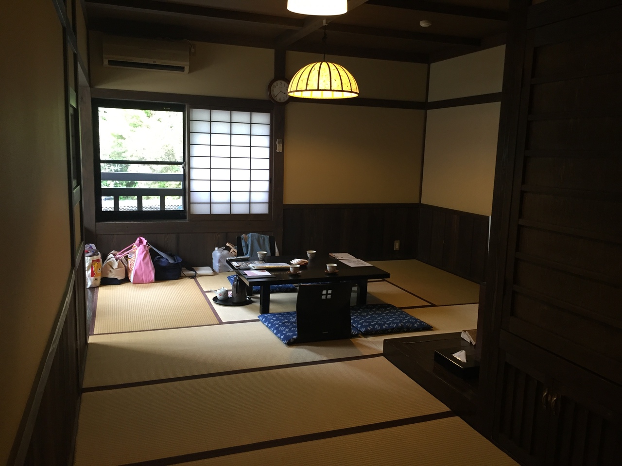 スタッフさんの対応も良く部屋に通されると思った以上に広い部屋で柿渋染めの柱が落ち着いた雰囲気を醸し出す。