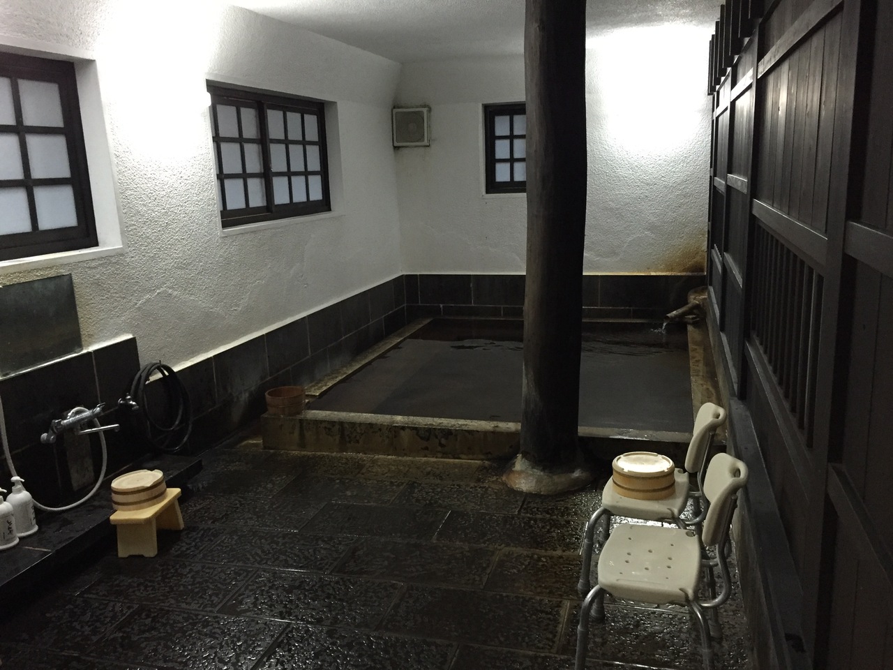 温泉は男女別の内風呂と家族風呂、時間帯で男女入れ替わりの露天風呂は貸切もできた。