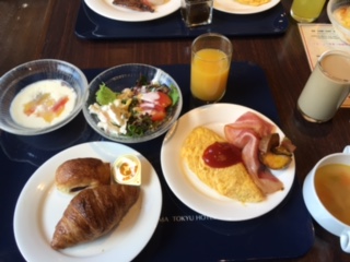 翌日の朝食はビュフェスタイルで種類も豊富で美味しいです。1日目は洋食、2日目は和食をいただきました。