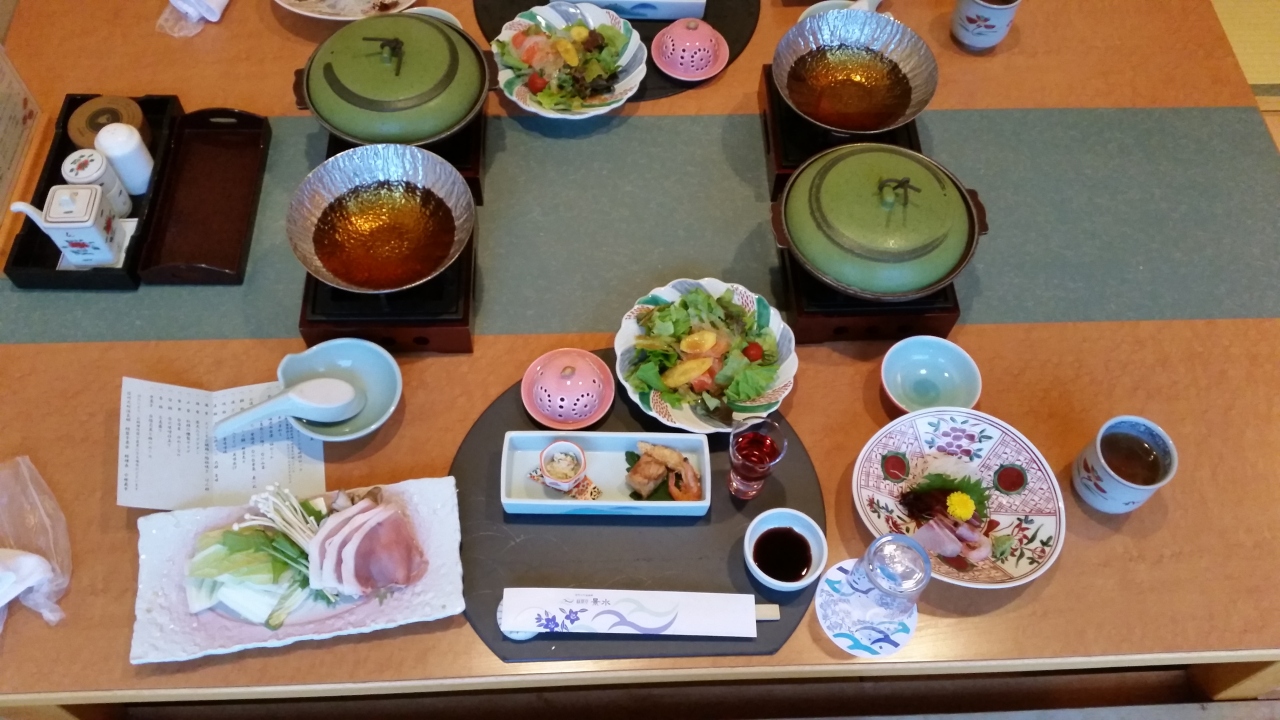 夕食は、食事処の堀こたつ形式なので足が楽でゆっくりと食べることが出来ました。