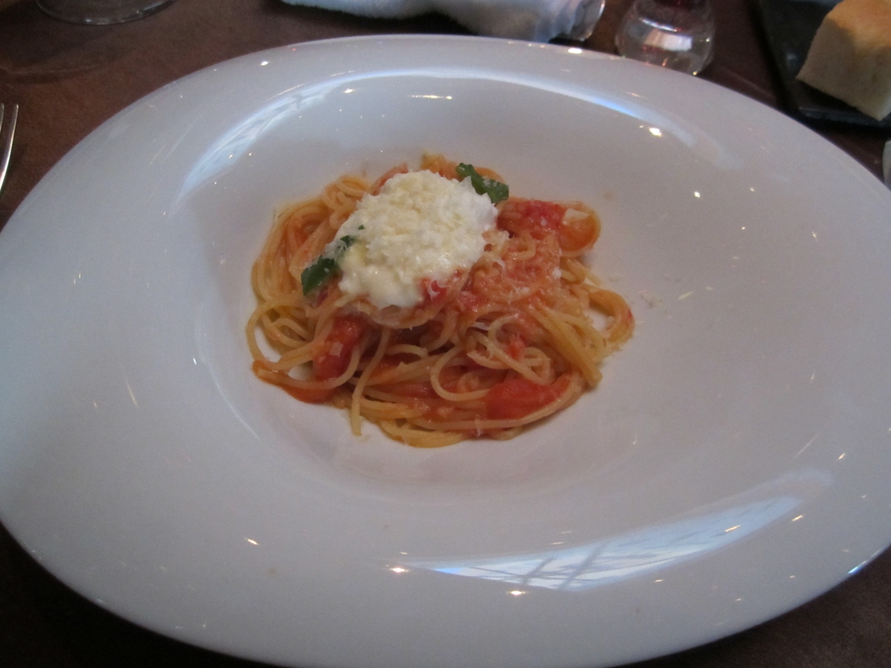 RISTORANTE OZIOはランチで利用したことがありますが、初めて、ディナーで出かけました。平日の6時に予約したのですが、意外と席は埋まり、空いているテーブルの方が少ないくらい。この店の魅力のほどが感じられます。料理も初めて食べるような凝った作りのものが多いのもこの店の良さ。トマトソースのパスタは重くなりがちなのですが、新鮮なトマトの風味を生かしたサッパリしたソースに仕上がっており、夏向きの一品に仕上がっています。川に近いロケーションながら、あまり外の景色は見えないのが玉に瑕なのですが、夜はイルミネーションが灯り、瑕を隠して余りあるゴージャスな雰囲気を醸し出していて、デートにお勧めの店です。