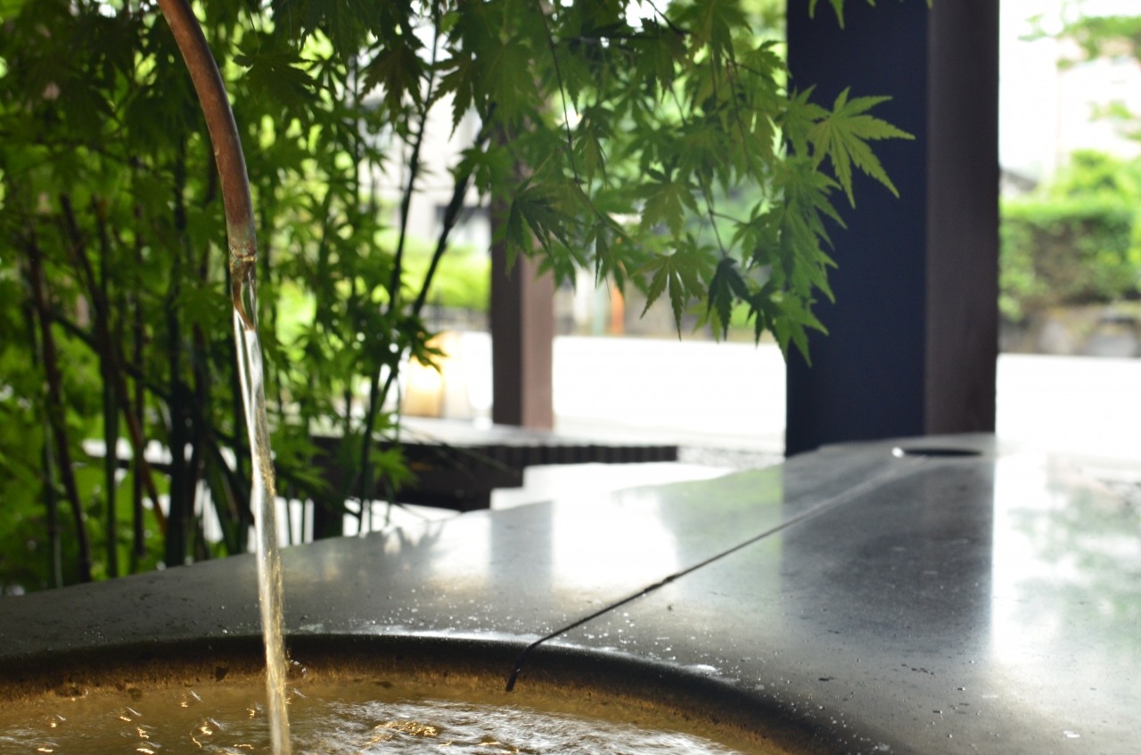 巨大な石の急須から温泉が出てくるようになっている。