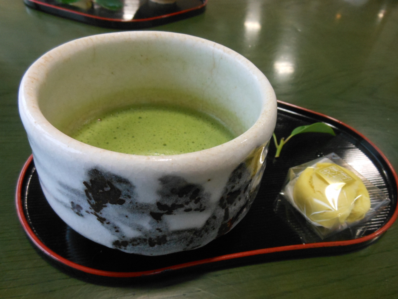 リムジンでのお迎え、ロビーでお抹茶とお菓子のサービス。