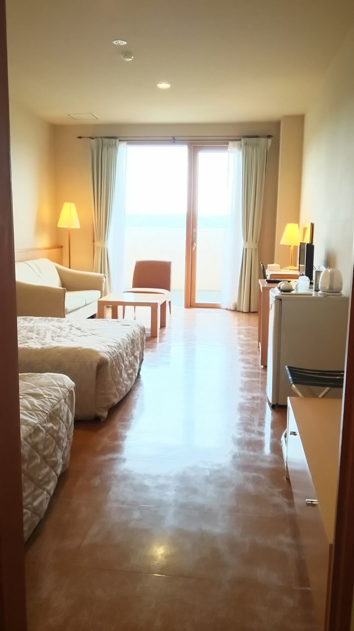 部屋は、景色が良くないのにテラスがあります。しかも、テーブルだけで椅子はありません。