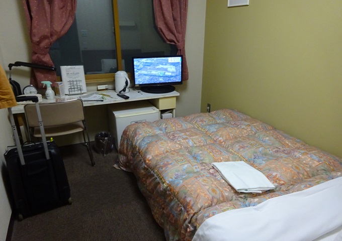 部屋は狭くて古いが、清潔感あり。冷蔵庫あり。