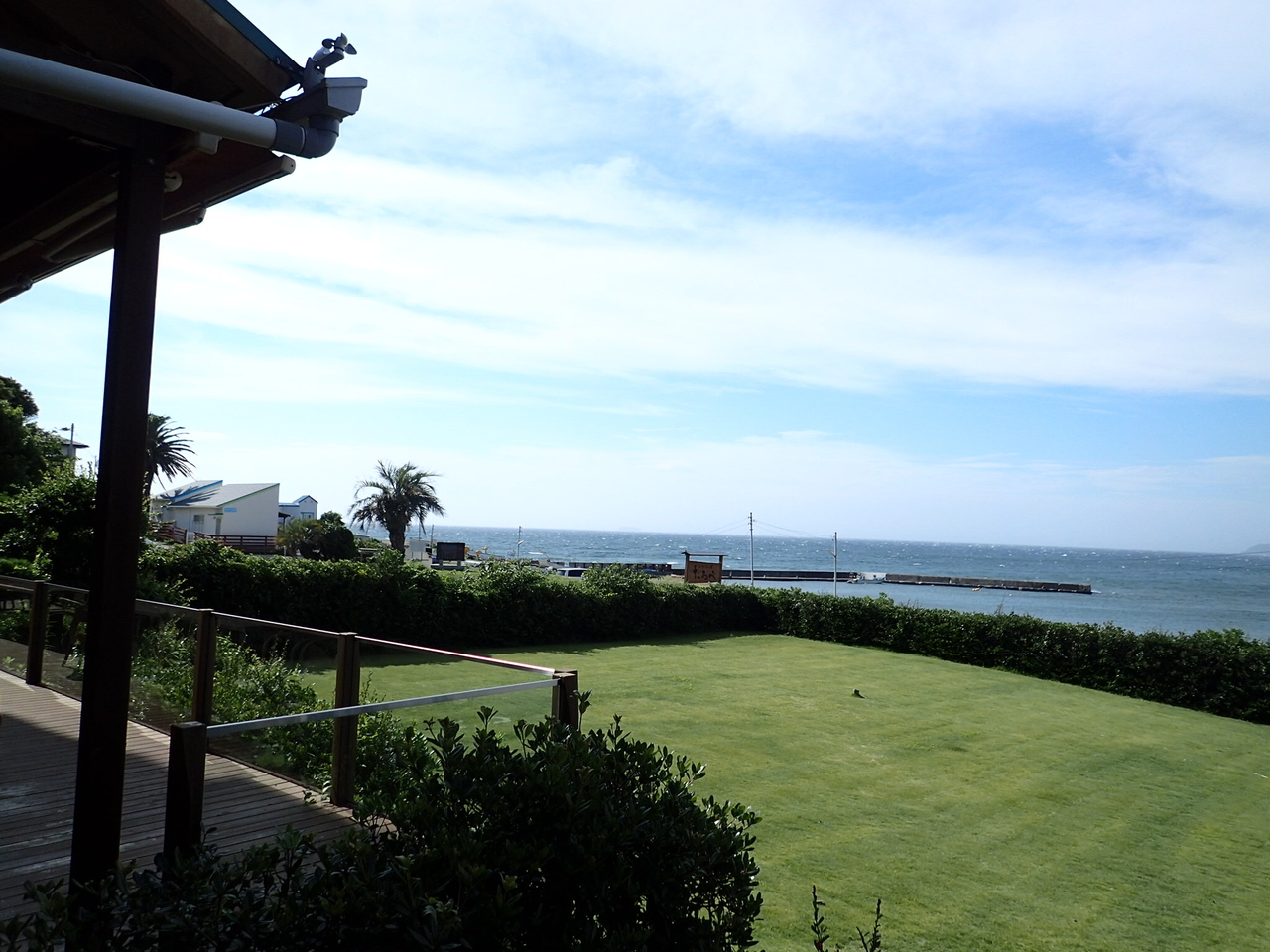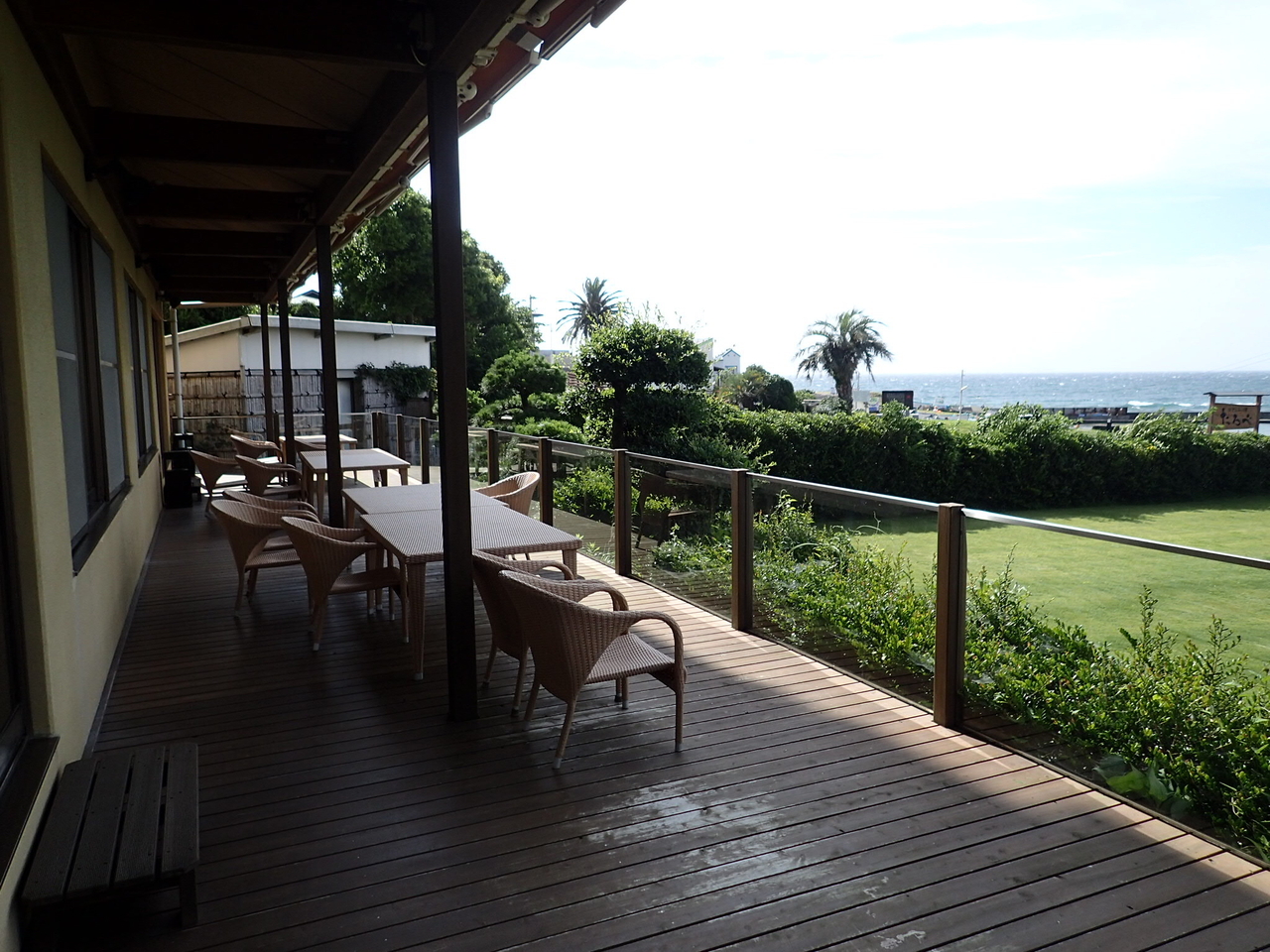 1階からはテラスにも出れ、目の前に広がる海を見ながらくつろげます。