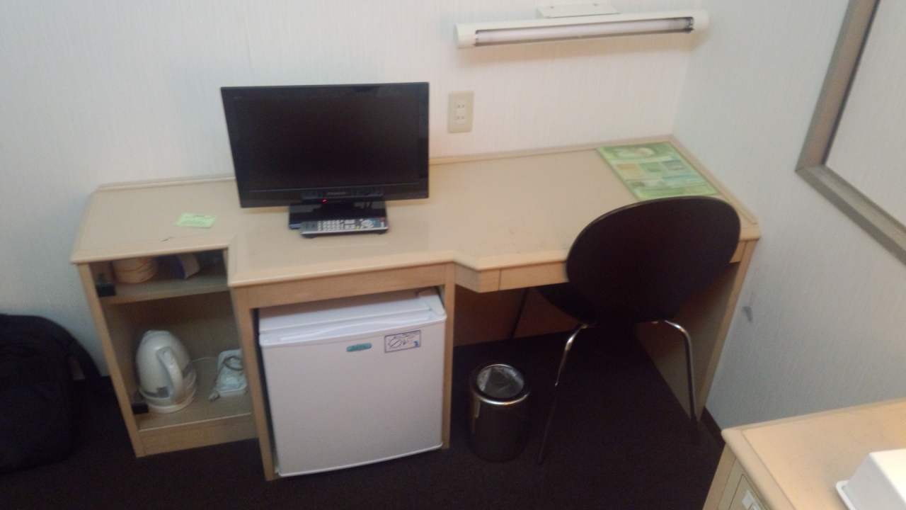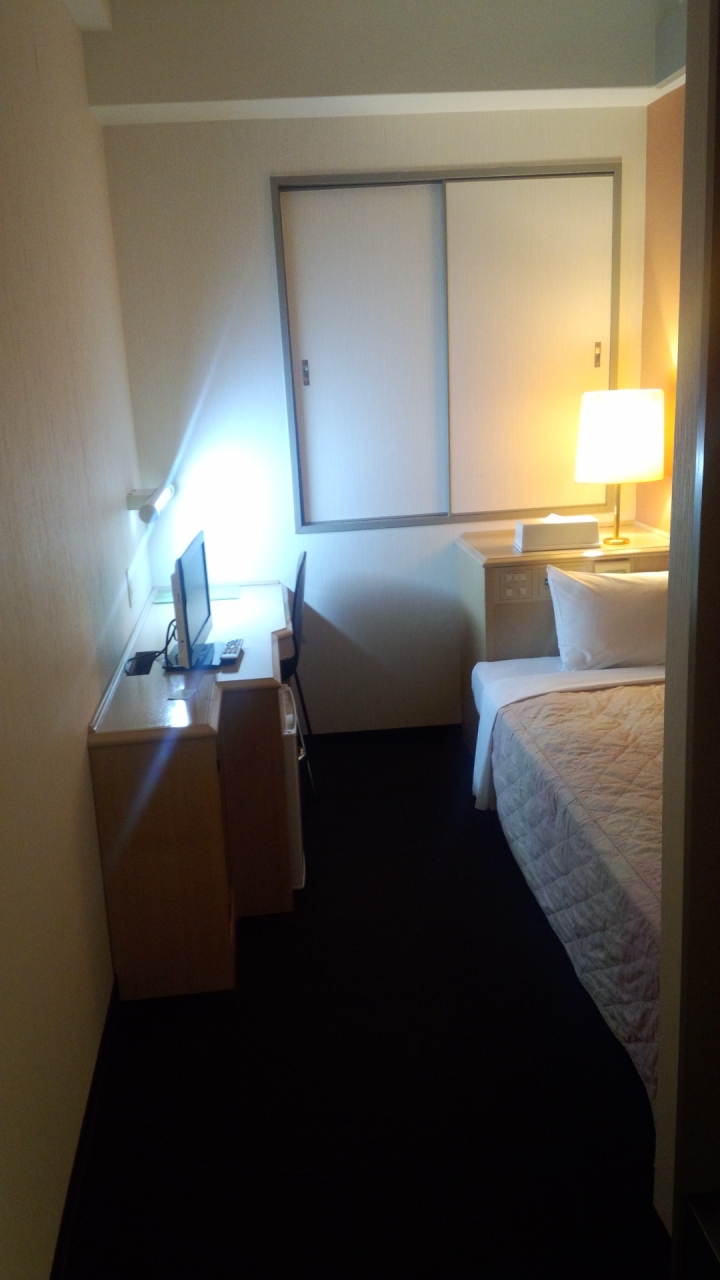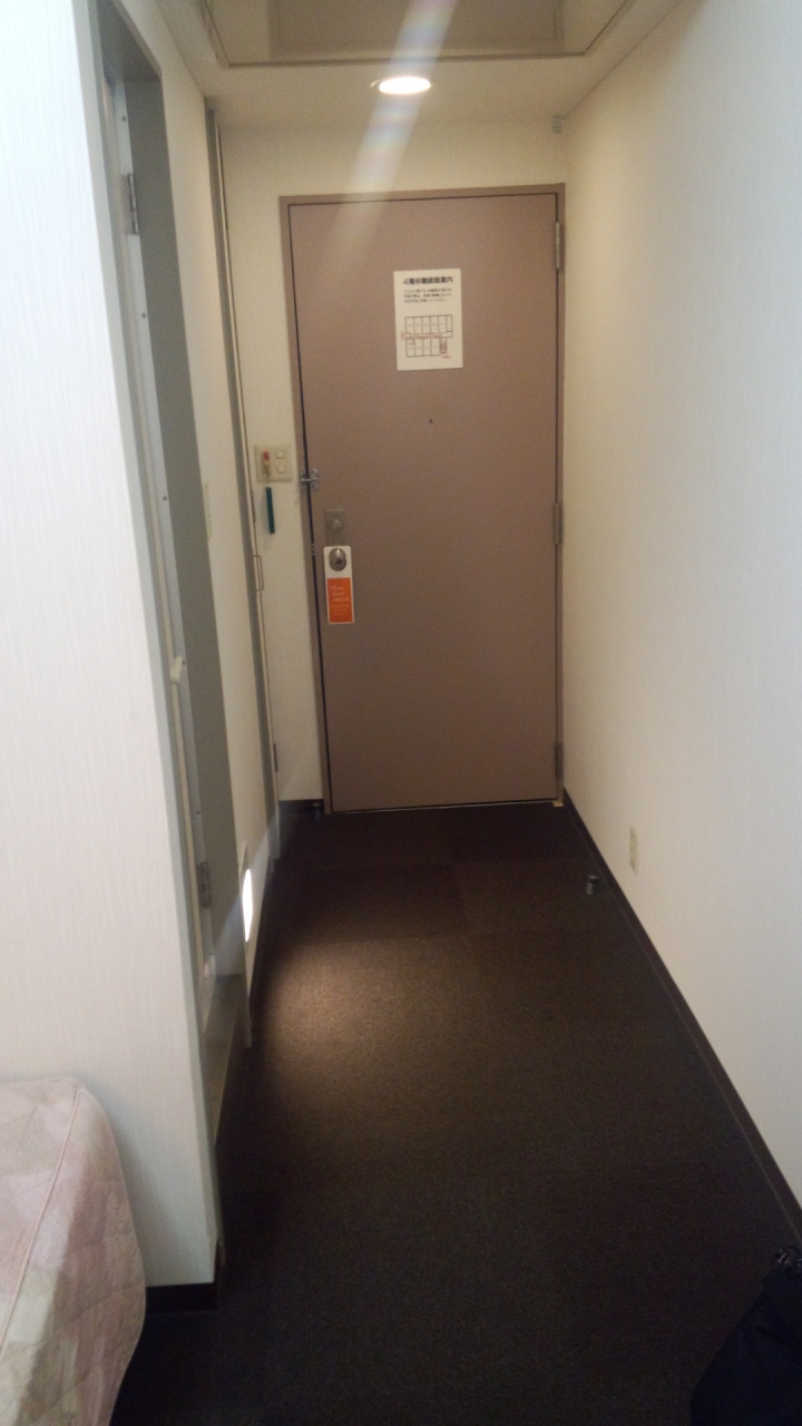 古めの建物で、いかにもビジネスホテルという感じです。部屋の扉は金属製で重いです。こんな扉新しいホテルでお目にかかることはありません。
