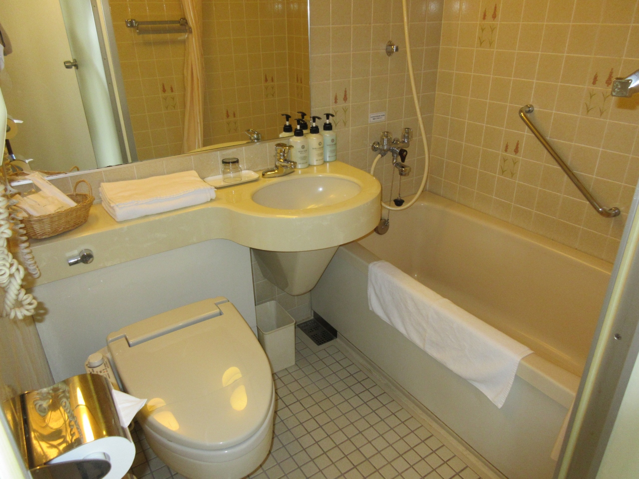 秋田市ではメトロポリタン、キャッスルと並ぶ老舗高級ホテル御三家の一つですが、たまたま前日新しいリッチモンドホテルに泊まっていたため、とにかく古さを感じました。部屋もバスルームもアメニティも昭和の雰囲気です。新しさや快適さが好きな人には向かないかもしれません。