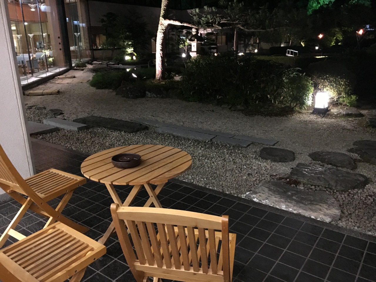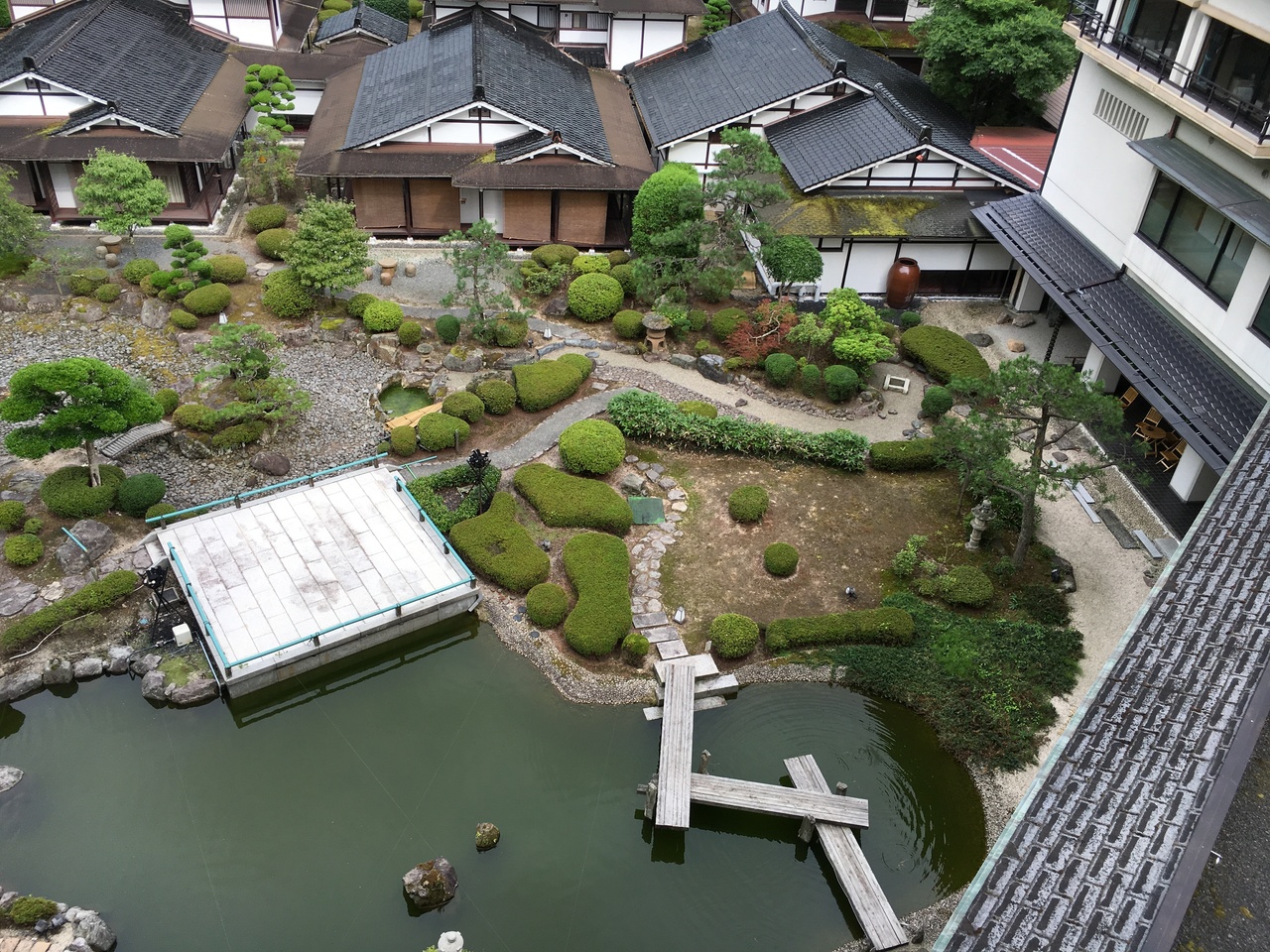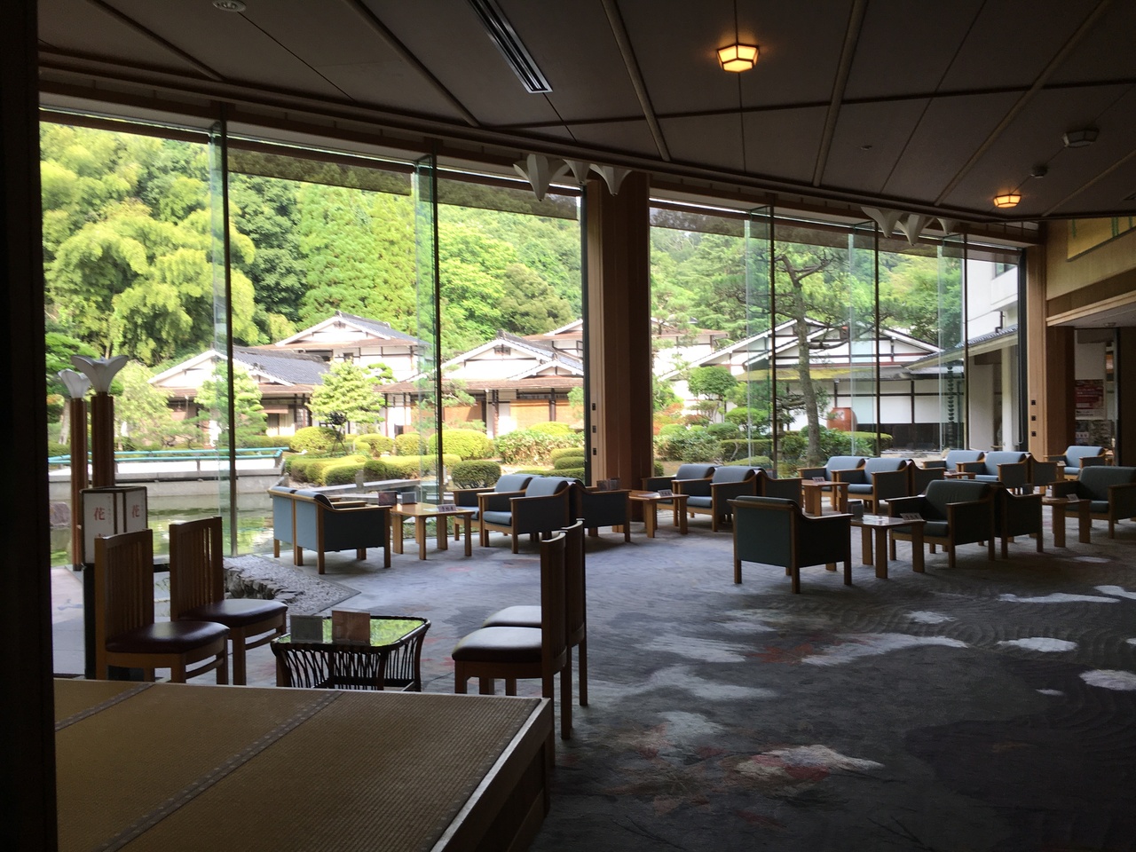 ホテルは川側ではなく、山側にありました。中庭もあり、三朝の中でも、規模の大きい旅館でした。