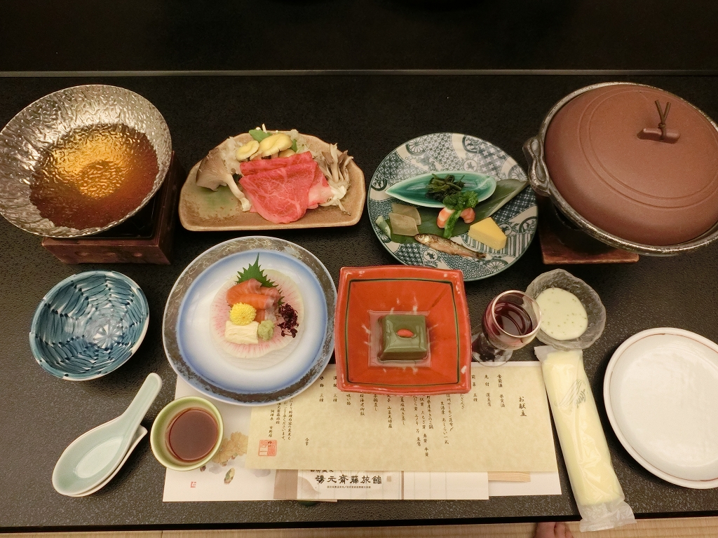 旅館の建物は歴史があり建て増し・増築を積み重ねてきたようです 私達が泊まった牧水荘は安いプランだったため部屋からお風呂に行くまで少し距離がありエレベーターを何回も乗り継ぐ必要があったため夕食前の一度きりの入浴でした 温泉を楽しみたい方は少し高くても介山荘にしたほうが無難だと思います