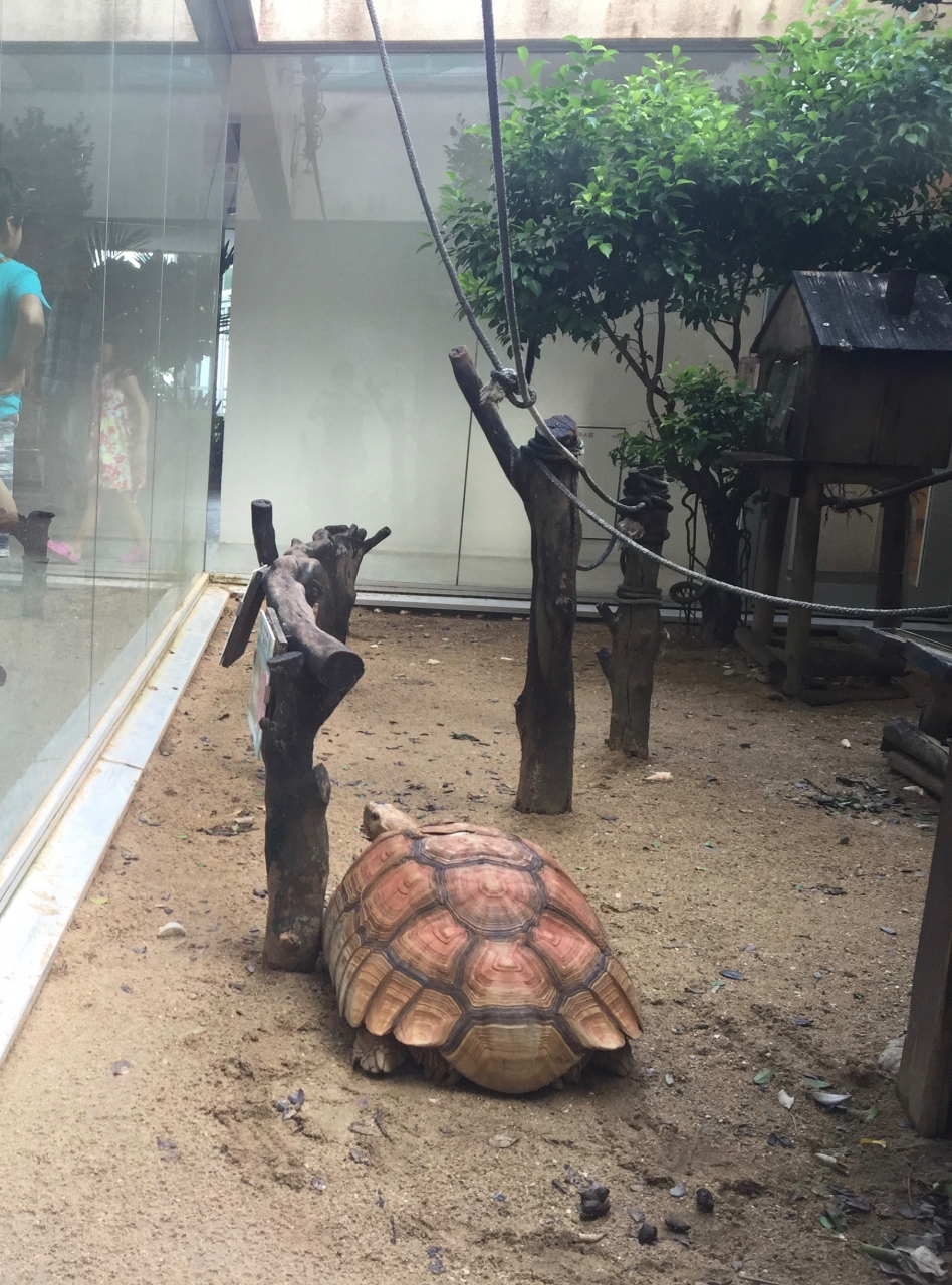レストランの行く途中に動物がいます。サルとカメです。子供たちはみんな楽しそうに見ていました。時間限定でフクロウも1階ロビーに現れるようなのですが、会えませんでした。