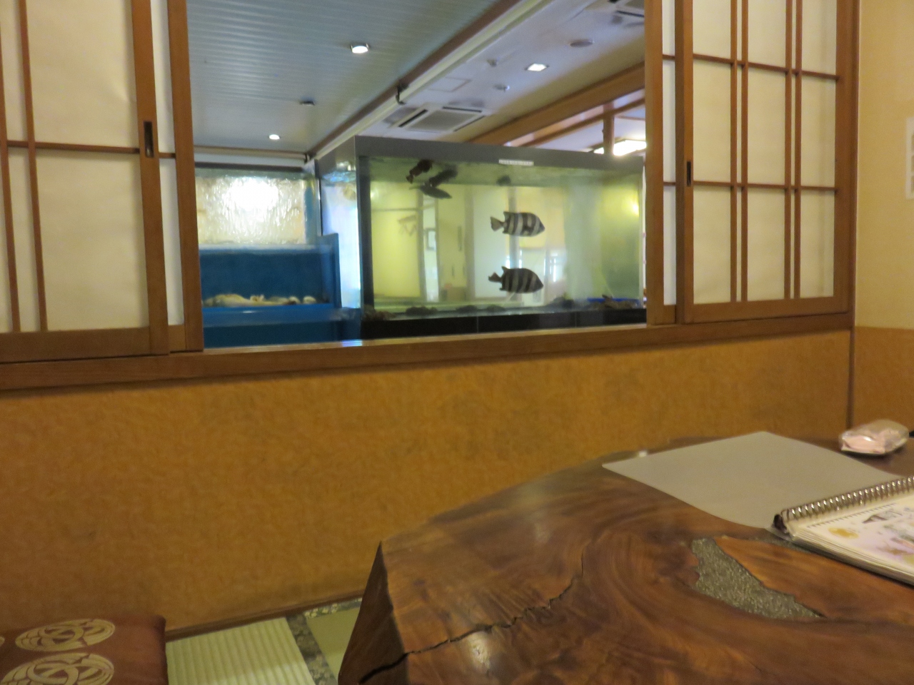 レストランの食事となるのですが、中央に生け簀があり魚などが