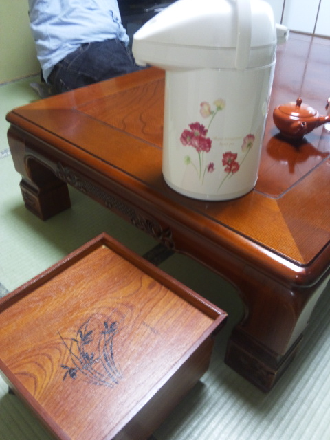 階段が急で怖い!ポットが電動ではなく手で押すタイプ、花柄付。お部屋の水道がお湯と水が一緒に出るタイプではなくて、左右にお湯と水があって洗面受けで混ぜる昔のタイプ。棚や廊下に飾ってあるものがいちいち昭和。