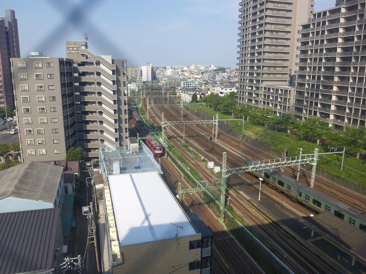 高層階線路よりは窓からトレインビューが可能。新子安は場所的に中途半端っぽく思われるかも知れないが、料金が安めで、京急とJRの駅があるため、どこへもアクセス性は非常に良いので、穴場的スポットかも知れない。