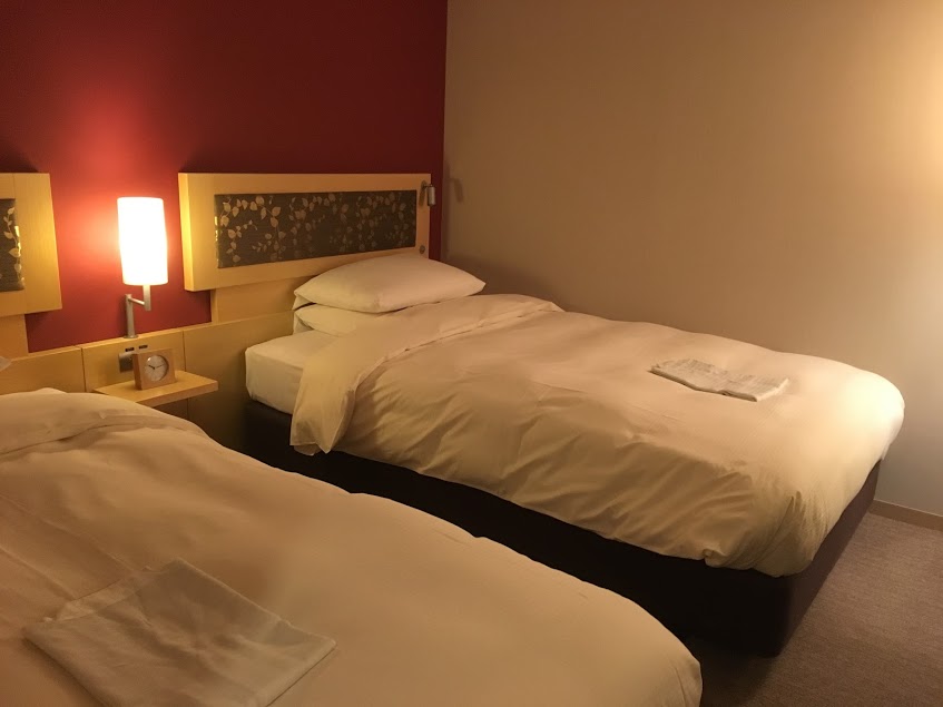 部屋は、よくあるビジネスホテルという感じの広さで狭いですが、きれいなのでとても快適に過ごすことができました。