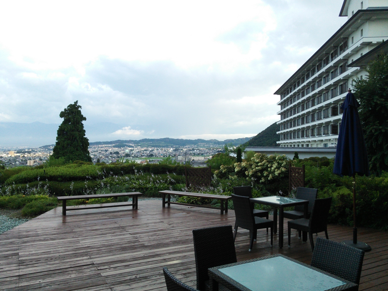 松本平を望む高台に位置する大型の旅館です。フロント前にあるガーデンテラスからは、最高の景色と庭園を楽しむ事が出来ます。
