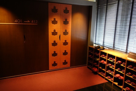 各階のエレベーター降りた場所で靴を脱いで室内履きスリッパに履き替えです。これって珍しい。