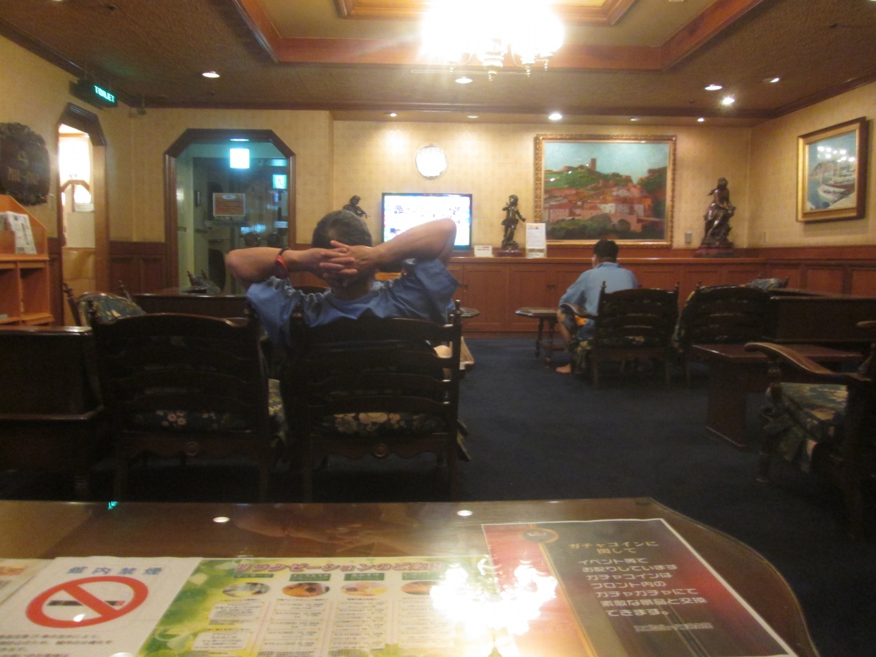 カプセルのあるフロアには広い休憩室があり、喫煙者はこちらで煙草を吸うシステムであった。カプセルでもテレビ、ラジオは視聴できるが、休憩室には大きいテレビがありゆったりとしたソファーでくつろげた。どこか昭和を感じるゲームセンターがあったりして懐かしさを感じる滞在であった。