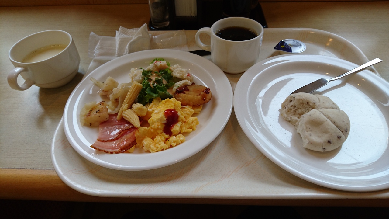 またここは朝食がついていて、輸入品のパンやスクランブルエッグやソーセージ、ジャーマンポテトなどがおいしくいただけました。