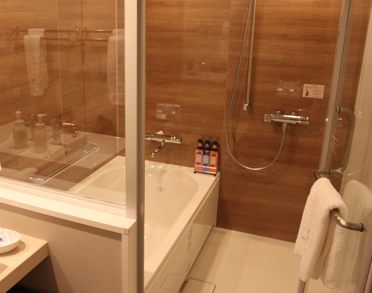 バスに洗い場があるのが嬉しいですね、タオルは今治タオルでふわふわ。