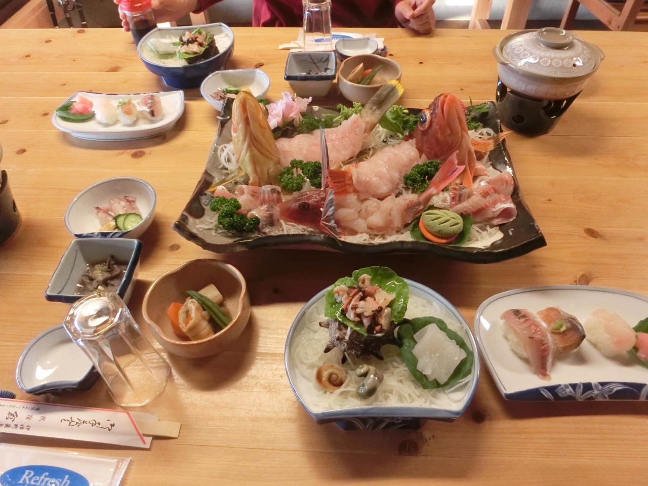 2人でこれだけの刺身があると、食べても食べても減らず、