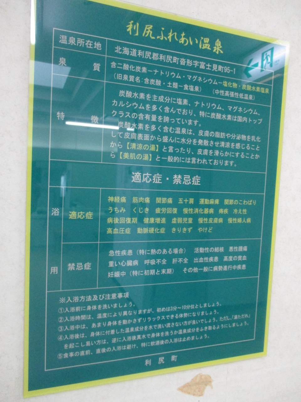 温泉は「利尻ふれあい温泉」と命名されており、国内トップクラスの炭酸水素塩泉で空気に触れて茶褐色に変色することから「金の湯」、「清涼の湯」、「美肌の湯」などとも呼ばれているそうです。