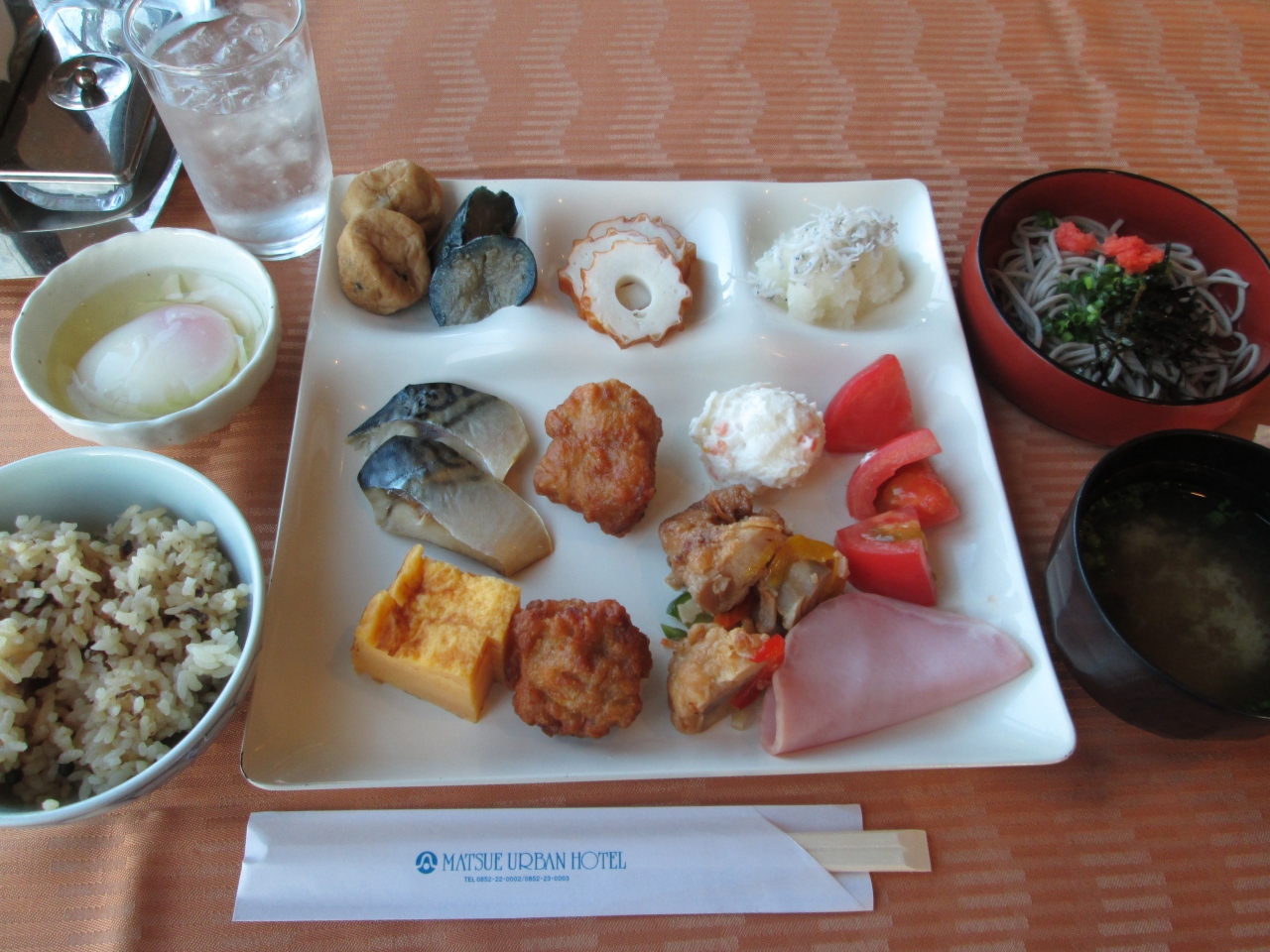 朝食には、しじみごはんに、しじみ汁、そばもあり観光客にはうれしいです。