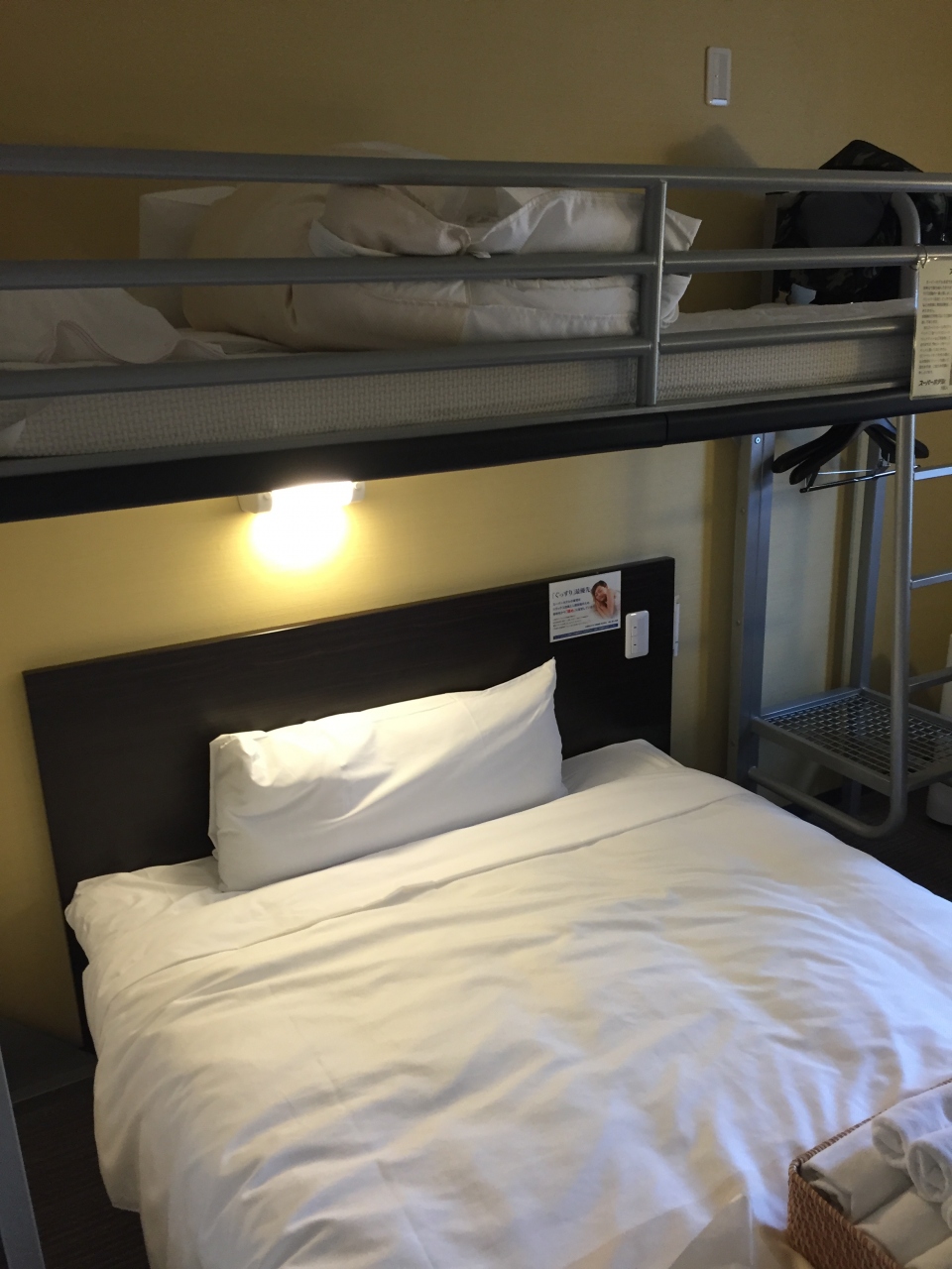 広めのベットとロフトベットがあり、家族3名で快適でした。