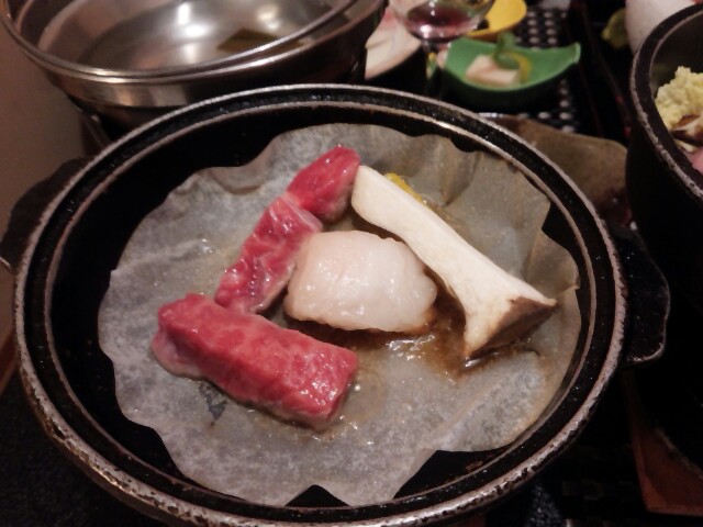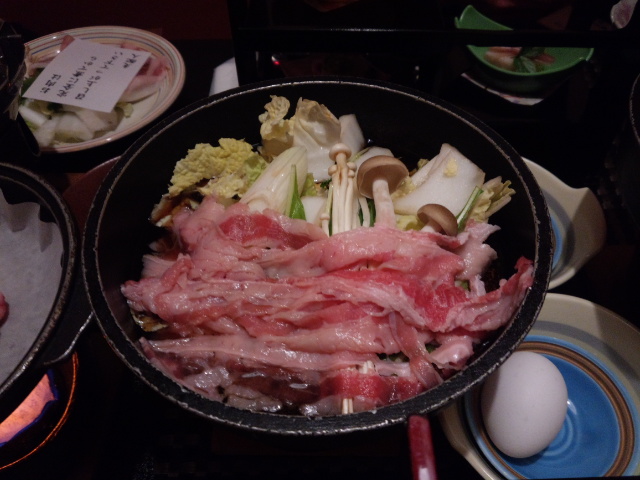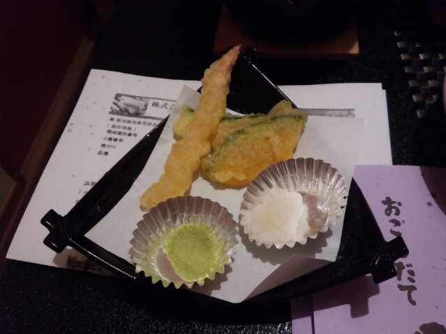 個室(夫婦では、狭すぎませんか)での美味しい夕食・ワインビーフ、揚げたての天ぷら、ほうとう鍋、鳥モツ等品数多く食べきれませんでした。