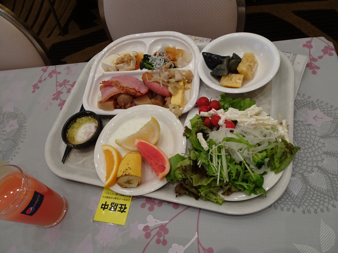 日曜日宿泊なので空いていると思いきや、結構な人数の少年の団体さんとぶつかり、朝食はなるべく遅い時間の方が空いていますと言われたので、8時過ぎに行きました。テーブルは半分くらい空いてました。騒がしくもなくよかったです。