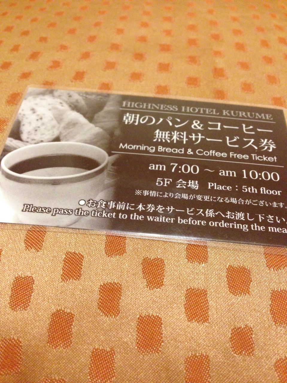 無料の朝食(パン、コーヒー、ジュース)も美味しかったです。