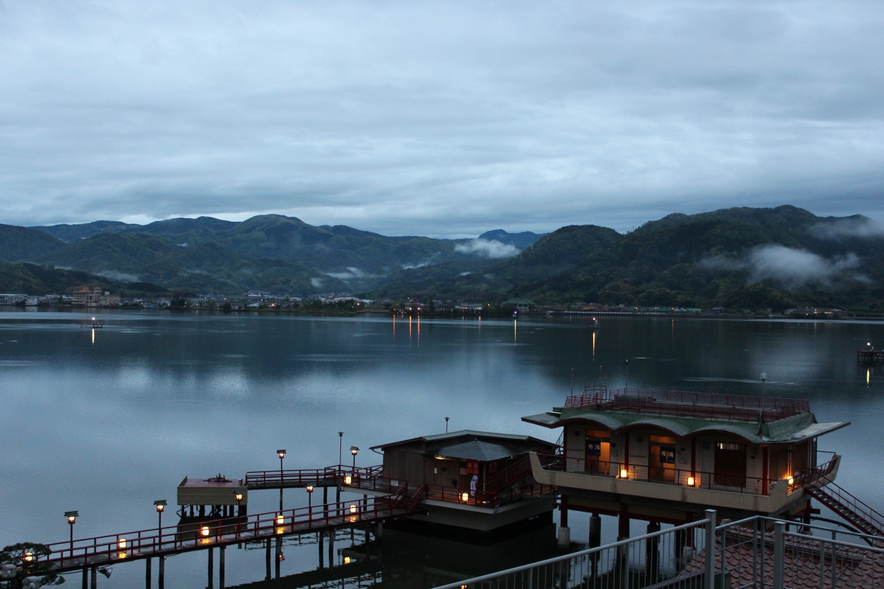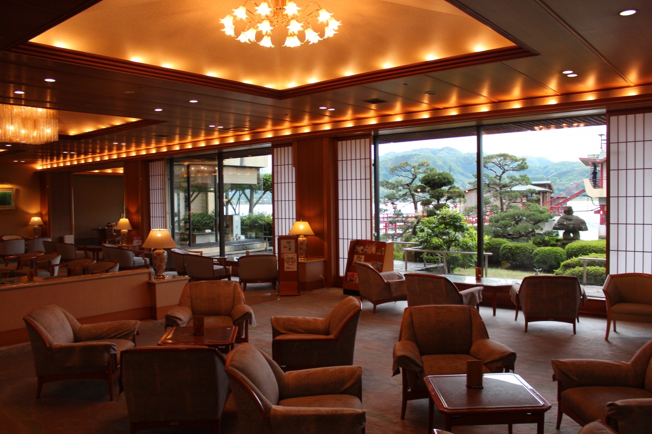 東郷池の湖畔、まさに水際(一部は湖上)に建っていて客室からの眺めは大変良かったです。大浴場は「天女の湯」と「神話の湯」のふたつあり、時間帯により男女入れ替え制でした。両方のお風呂に入ってきましたが、源泉かけ流しで、入り口を入るとすぐ目の前に巨石のモニュメントが置いてあったり、巨石をくりぬいて造った浴槽があったりと興味をそそられる造りになっていて楽しめました。また、大浴場とは別に湖上に架かった朱色の橋を渡って行った先にある湖上に浮かぶ露天風呂は眺めの良い大変風情のあるお風呂でした。また、橋の途中には事前にいただい生卵を「たまごのお風呂(温泉)」につけておいて帰る途中に持ち帰り、お食事処「みずうみ」で食べましたが、見事に温泉たまごになっていました。小さいコップですが冷えたビール一杯の無料サービスもあり、心遣いに感心しました。