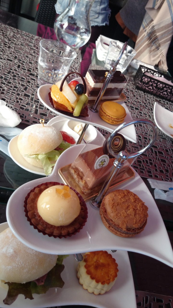 普通のランチに、プチアフタヌーンティーを2組オーダーし、それぞれの夫婦で仲良くシェアして食べることに。