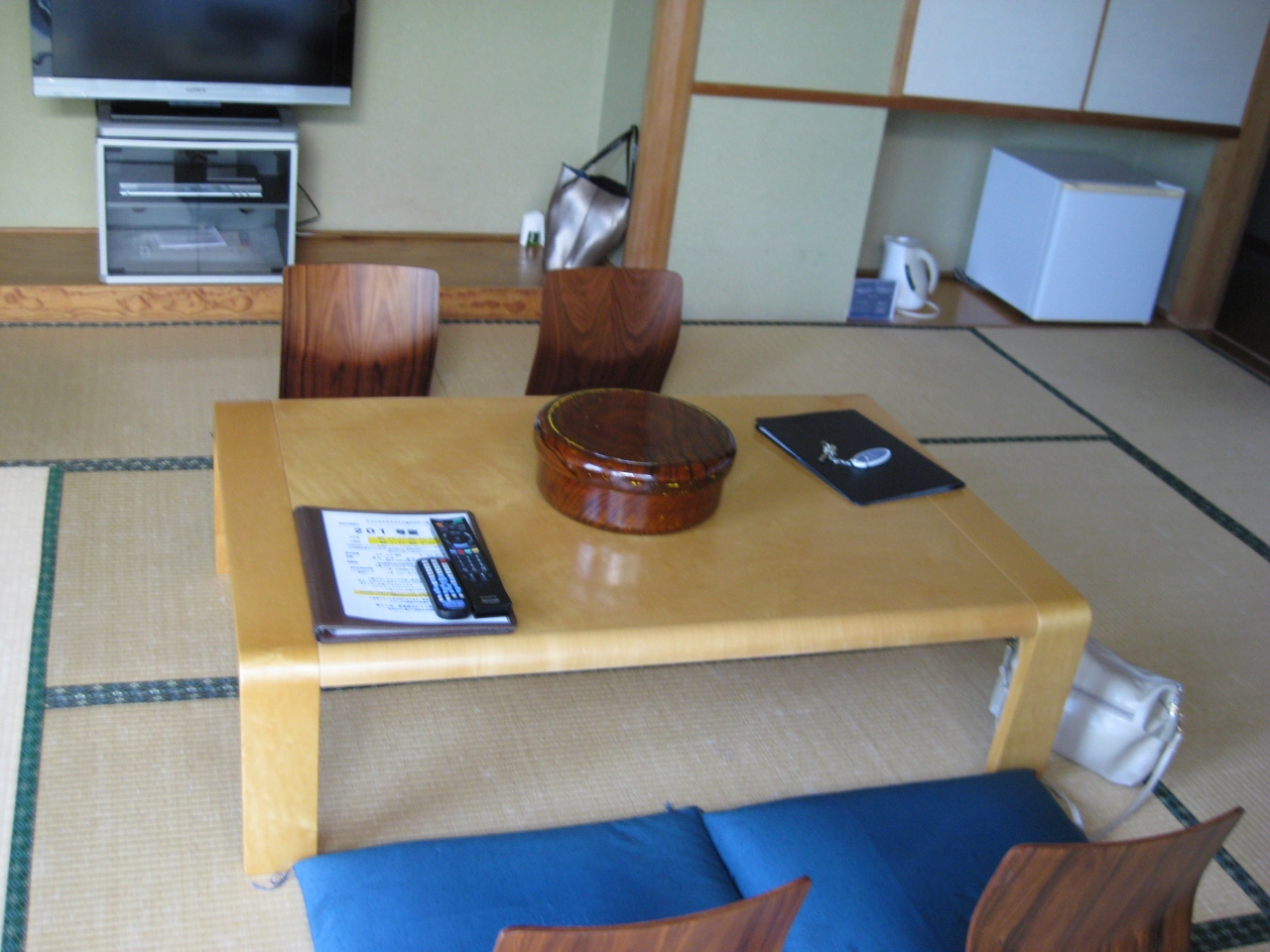 第一に立地の問題。周囲には商業施設は何もなく、歩いて観光できる所はない。車のない人はやめたほうがよい。それを除くとホテルの環境自体は悪くない。森に囲まれて実に静かな場所だ。部屋は広く周りの森はよく見えるが、和室で椅子は全くなく、床に座るしかないので、足や腰にこたえた。夕食は折衷的だが、フルコースで魚も肉も付く。値段からすると驚異的だ。朝食は幕の内弁当のような容器に、旅館の朝食によく出る塩味系の、きんぴらや煮魚、ひじきの煮物、漬物などを盛り込んだもので、あまりうれしくない。特に連泊する人にとっては苦行だろう。