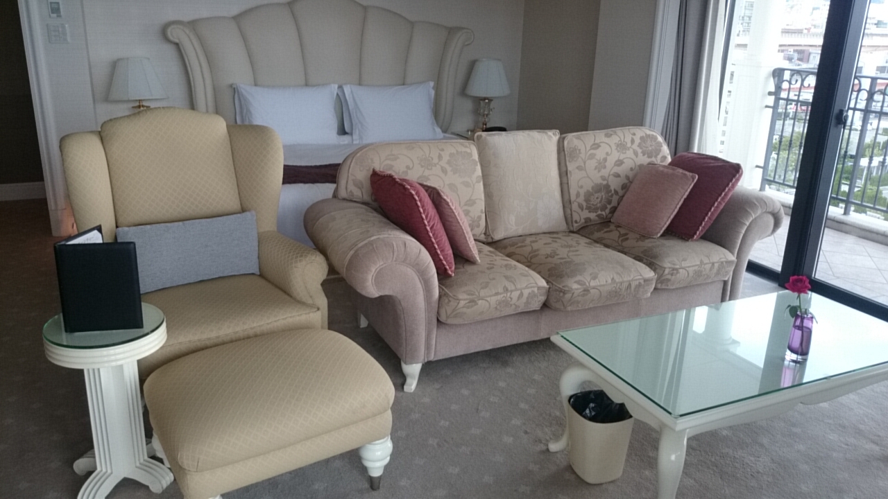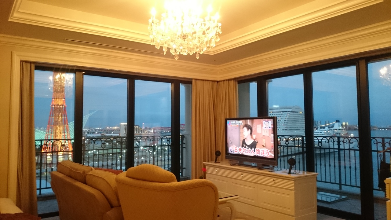 一休で神戸のホテルを調べていたらこちらのホテルが人気とのことで、宿泊することにしました。ベランダが広く開放感のあるお部屋が良かったので、エグゼクティブフロアのデラックスダブルにしました。宿泊したお部屋は、モザイク側にある端の最上階の8階でした。(ホテル全体では11階建て)全室70平米以上あるとのことでお部屋はとても広かったですし、アメニティ、クッキーやコーヒーや紅茶等々が充実していました(ミネラルウォーターは2本無料と2Lの瓶入りミネラルウォーターも置いてありました)。チェックインする際に、女性は4種類の中から好きなアメニティセットもいただけました。お部屋に案内されるとすぐにアロマサービスがあり、とても良い香りで癒されました。あまりに良い香りなので、帰りに購入してきました(フロントとスパで購入可能)。お部屋にはバスローブとパジャマがあり、パジャマは上下別々のタイプでした。バスローブは、部屋からスパに行く際に利用しました(スパ専用エレベーターあり)。たまたま8月は女性のお客様は無料でスパを利用できました。二度利用しましたが、ほとんど貸切でゆっくり炭酸泉やジャグジーに入ることができ、帰りにざくろ酢などもいただき疲れも取れました。一番端の部屋だったので、ベランダに出ても隣の部屋は全く気にならず(遠くのベランダとお部屋は見えました)、モザイク側のベランダにはイスとテーブルがありゆっくり出来ました。眺望は、お部屋からも浴室からも文句なしで最高に良かったです。